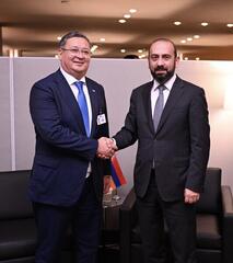 С Министром иностранных дел Республики Армения Араратом Мирзояном обсуждена актуальная повестка двустороннего и многостороннего сотрудничества. Особое внимание было уделено подготовке к предстоящему официальному визиту Премьер-министра Армении в Казахстан.