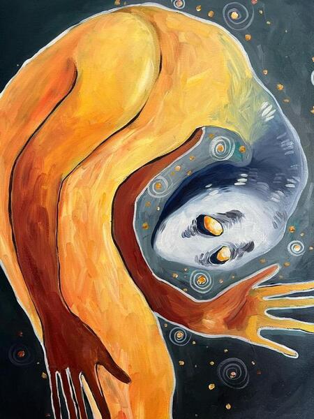 По её словам, все полотна, вошедшие в экспозицию, можно объединить общей темой поиска себя, своего места и предназначения в мире. При этом в работах художница использует метафорические и иносказательные образы, в которых каждый зритель может увидеть что-то своё.