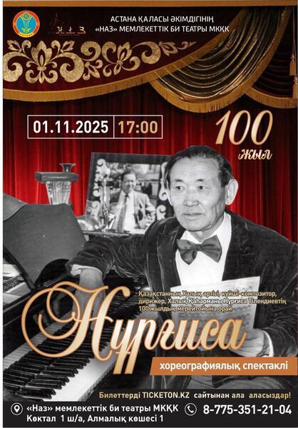 Столичный Государственный театр танца «Наз» представит зрителям хореографический спектакль «Нұрғиса», приуроченный к 100-летию со дня рождения народного артиста Казахстана, композитора и дирижёра Нургисы Тлендиева, передает официальный сайт акимата Астаны.