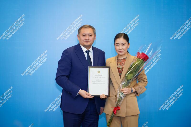 В соответствии с Указом Главы государства министр вручил орден «Құрмет» заведующему кафедрой теоретической и ядерной физики Казахского национального университета имени аль-Фараби Медеу Абишеву. Кроме того, во исполнение поручения Президента 10 молодым ученым в торжественной обстановке были вручены сертификаты на жилье.