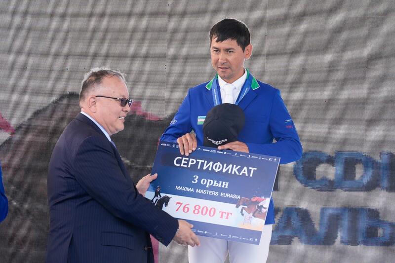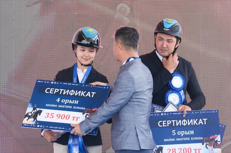 По итогам первого соревновательного дня прошли три заезда:Кубок Мира Евразийской Лиги, конкур 125 смПобедители:1 место — Андрей Тряпицын (Кыргызстан);2 место — Хуршидбек Алимджанов (Узбекистан);3 место — Даяна Онаева (Казахстан).Малый кубок Maxima Masters Eurasia — конкур125 смПобедители:1 место — Бекжан Байжанулы (Казахстан);2 место — Андрей Тряпицын (Кыргызстан);3 место — Хуршидбек Алимджанов (Узбекистан).Кубок Мира Евразийской Лиги, конкур 140 смПобедители:1 место — Хуршидбек Алимджанов (Узбекистан);2 место — Акбар Шарипов (Узбекистан);3 место — Бекзод Курбанов (Узбекистан).