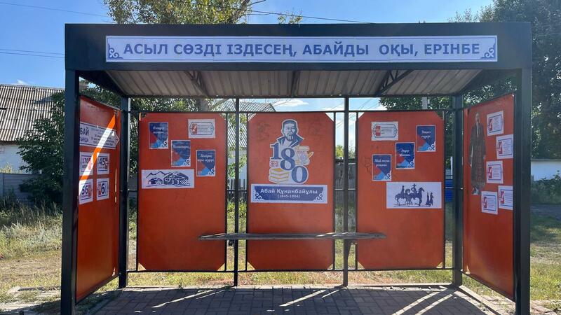 В селе Кокпекты Бухар-Жырауского района появилась литературная остановка, посвящённая Абаю Кунанбаеву. Это не просто место ожидания транспорта, а современная культурно-просветительская площадка.