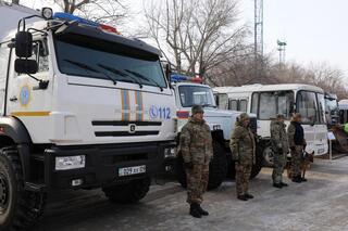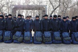 После строевого смотра подразделения приступили к формированию колонн. Согласно легенде учений, часть сил была направлена в Северо-Казахстанскую область для усиления группировки.