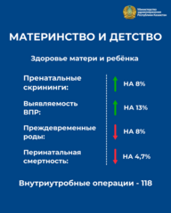 • расширена сеть пансионатов «Салауатты Ана» — 16 регионов, госпитализировано около 3 тыс. беременных.