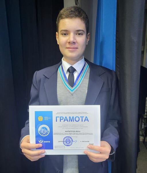 Золотую медаль завоевал двенадцатиклассник НИШ Даниал Орысхан. Победитель олимпиады увлекается математикой и шахматами.
