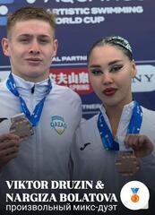 Бронзовые медали завоевали Виктор Друзин и Наргиза Болатова в произвольной программе среди микс-дуэтов,