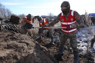Аким Костанайской области Кумар Аксакалов с рабочим визитом посетил сёла Карамырза и Октябрьское Карасуского района, где ознакомился с противопаводковыми мероприятиями. В районе заготовлено 20 тысяч мешков, 450 тысяч инертных материалов, задействовано более 110 человек и 20 единиц техники.