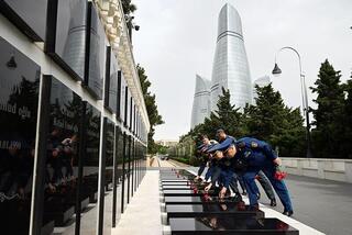 В рамках визита военнослужащие Казахстана побывали в Аллее шехидов, где почтили память героев, отдавших жизнь за независимость и территориальную целостность Азербайджана.