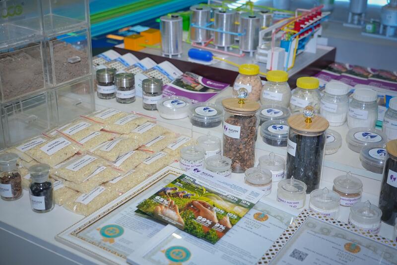 В направлении водосбережения представлена технология суперсорбентных гидрогелей на основе модифицированных акриловых соединений, обеспечивающая удержание влаги в почве, снижение потребности в поливе, повышение засухоустойчивости растений и рост урожайности.