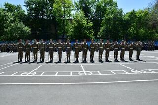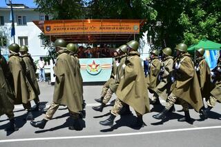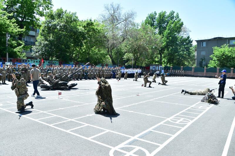 После торжественного парада, студенты военной кафедры провели праздничный концерт и представили программу на военную тематику.