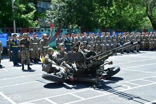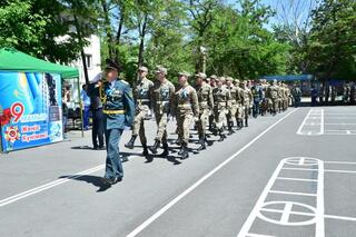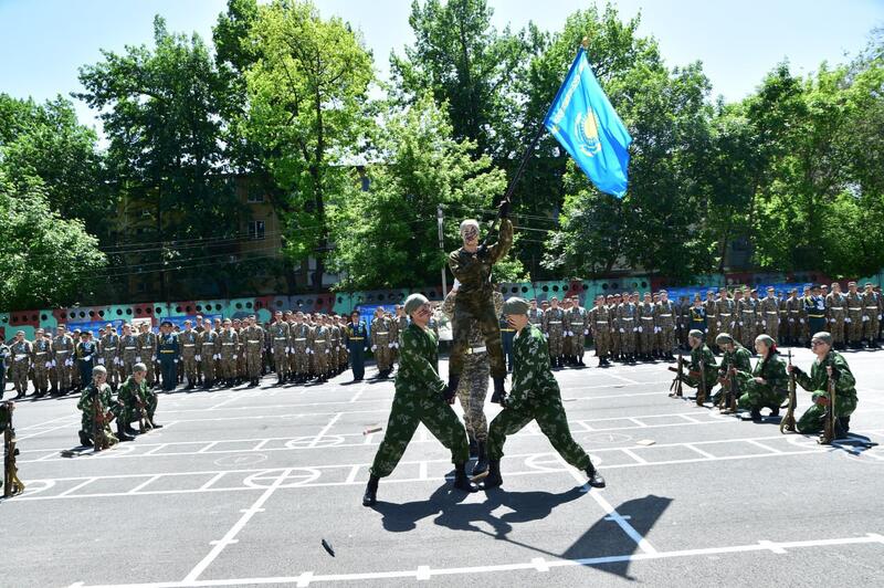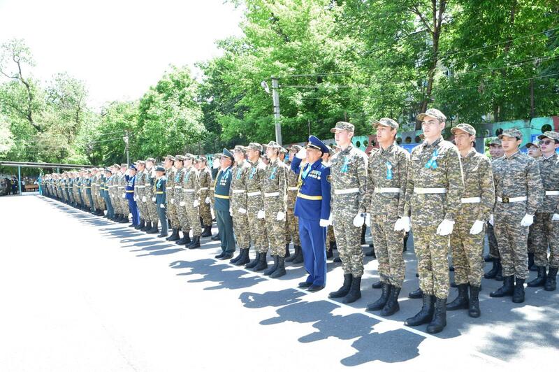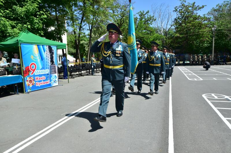 Торжественное шествие по случаю праздника возглавил начальник военной кафедры КазНУ имени аль-Фараби, полковник запаса Олег Уали-Ахметович Ажимов, который отметил: