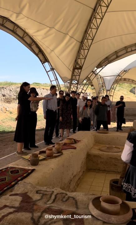 Гости ознакомились с историей древнего города Шымкента, осмотрели места археологических раскопок, а также обновлённые культурные объекты.Им была представлена подробная информация о значении города на древнем торговом пути, а также о его культурном и историческом наследии. В свою очередь господин Хань Чуньлинь высоко оценил богатый историко-культурный потенциал Шымкента и отметил заинтересованность в дальнейшем укреплении культурного сотрудничества между двумя странами.