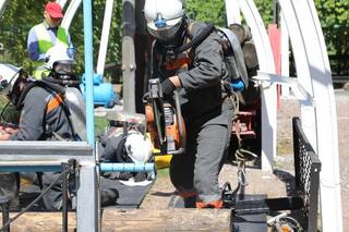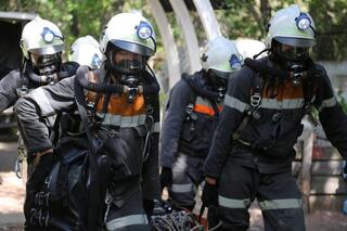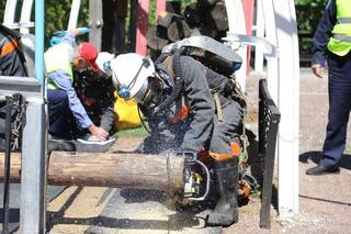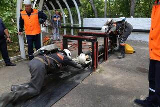 В дисциплине «разведка» спасатели в изолирующих респираторах обследовали условно аварийный участок, искали и эвакуировали «пострадавших» с использованием мотореза, гидравлического аварийно-спасательного инструмента и кислородно-дыхательной аппаратуры.