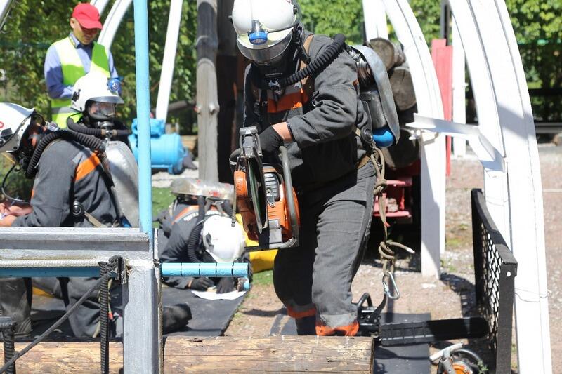 Горноспасательная эстафета объединила теоретические и практические задания: от толчка гирь и заполнения путёвки на выезд до распиливания лесины, кантования автопокрышки, подъёма груза и транспортировки «пострадавшего». В личных соревнованиях респираторщики устраняли неисправности респиратора Р-30, а водители демонстрировали знания ПДД и навыки вождения автобуса ПАЗ на полигоне.