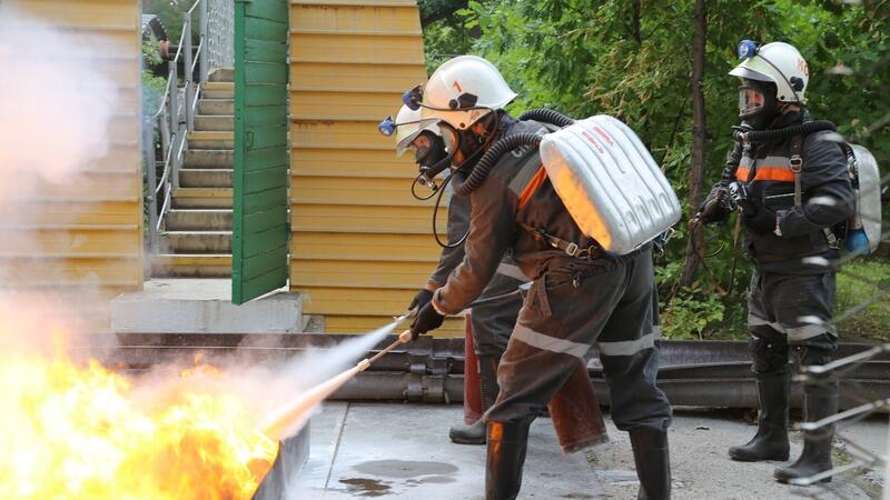На этапе тушения пожара команды подключали гидрант-пистолет к пожарному трубопроводу и использовали воду, воздушно-механическую пену и порошковые составы.