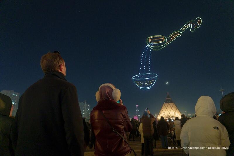 Жители и гости столицы могли наблюдать яркие композиции, демонстрирующие богатое традиционное казахское наследие. Зрителям представили световые инсталляции в виде юрты, тайказана, чаши с шубатом, каравана с верблюдом и асыка — образов, олицетворяющих кочевую культуру, достаток, силу и самобытность народа.