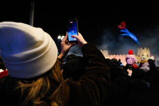В небе также раскрылся трёхмерный тюльпан - символ пробуждения природы и наступления весны. Появились образы солнца и луны, которые олицетворяют весеннее равноденствие.
