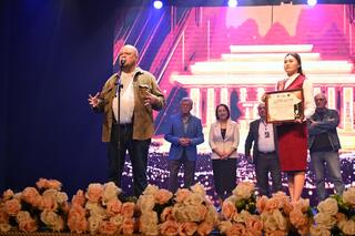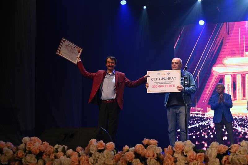 Затем праздничное мероприятие продолжилось церемонией награждения. В частности, Гран-при завоевал спектакль Областного казахского музыкально-драматического театра им. Абая «Абай айтқан айтылық Еңлік-Кебек». В награду – денежный сертификат на сумму 1 млн. тенге.
