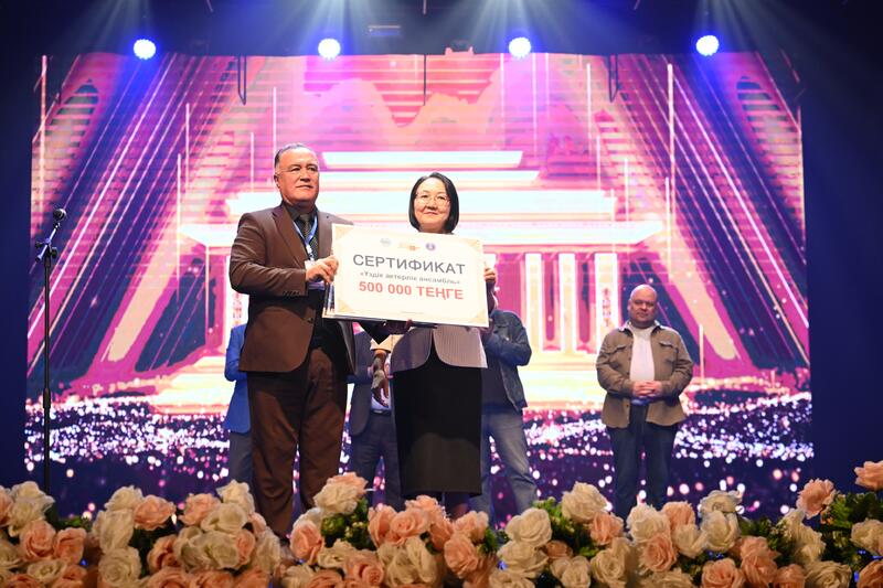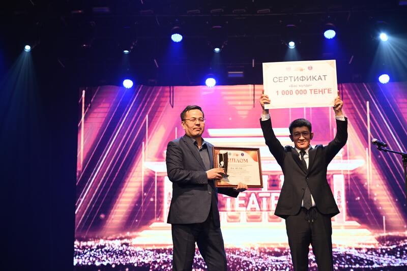Затем праздничное мероприятие продолжилось церемонией награждения. В частности, Гран-при завоевал спектакль Областного казахского музыкально-драматического театра им. Абая «Абай айтқан айтылық Еңлік-Кебек». В награду – денежный сертификат на сумму 1 млн. тенге.