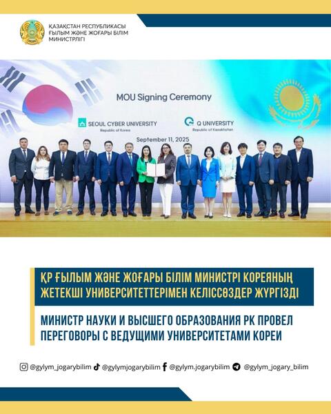 Министр науки и высшего образования РК провел переговоры с ведущими университетами Кореи