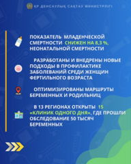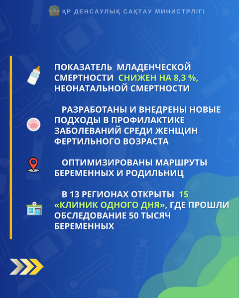 По результатам реализации Плана действий по развитию службы охраны здоровья матери и ребенка «Каждая женщина-каждый ребенок» в 2024 году удалось снизить показатель материнской смертности на 12%.