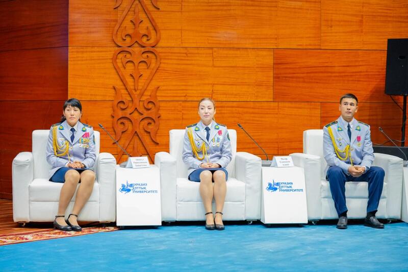 На мероприятие были приглашены победители международного турнира UAE SWAT Challenge, столичные полицейские, чемпионы мира - Айнагуль Байжигитова, Молдир Атанай и Елдос Сартай.