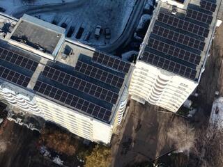 На крышах ряда учебных корпусов Казахского национального университета имени аль-Фараби установлены солнечные панели. В частности, солнечными панелями были оборудованы здания Высшей школы экономики и бизнеса, журналистики, юридического, исторического, географического, биологического, филологического и медицинского факультетов.