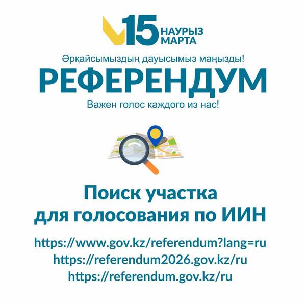 Запущен сервис «Найдите свой избирательный участок для голосования по ИИН» для определения участков для голосования на республиканском референдуме, который состоится 15 марта 2026 года.