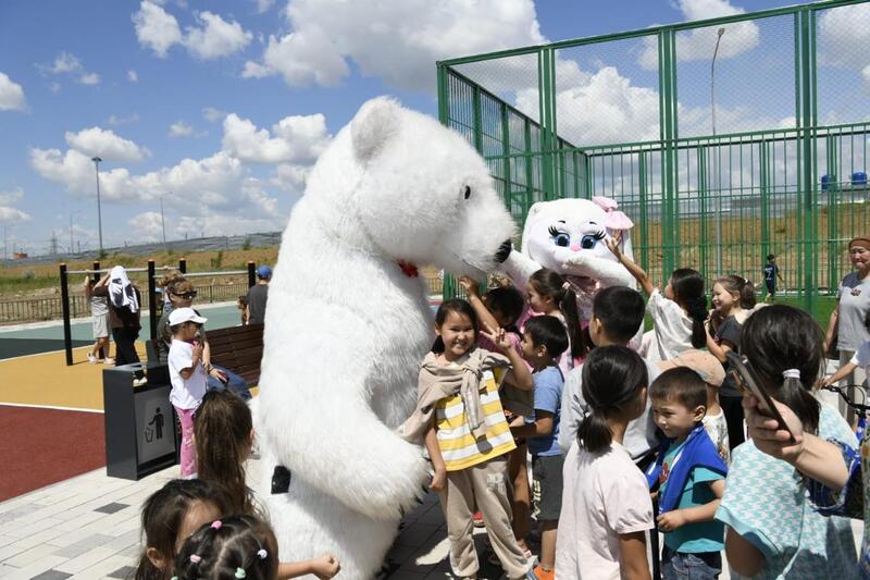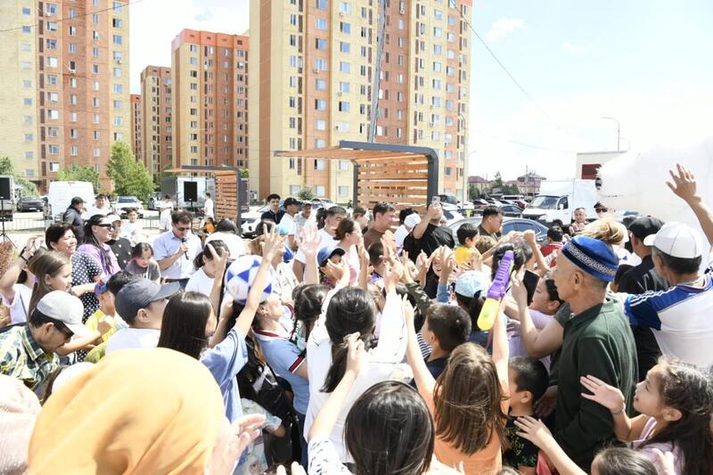 Детей развлекали аниматоры.Подарком ко Дню столицы для жителей района Алматы стали 22 благоустроенных двора, оснащенных всем необходимым, еще в 9 выполнены все работы и они готовы к сдаче.