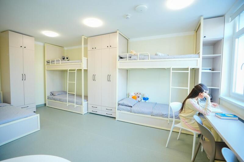 Новое общежитие отвечает современным требованиям комфорта и безопасности. В каждой комнате предусмотрено по пять комфортных койко-мест, собственный санузел. На каждом этаже расположены столовые зоны отдельно для девушек и юношей. Для физического и творческого развития студентов оборудованы тренажерный зал и зал хореографии, а также библиотека для учебы и саморазвития.