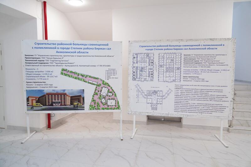 В г. Степняке района Биржан сал завершается строительство районной больницы на 45 койко-мест, совмещенной с поликлиникой на 200 посещений в смену. В рамках рабочей поездки аким Акмолинской области Марат Ахметжанов и министр здравоохранения Акмарал Альназарова посетили медицинский объект.