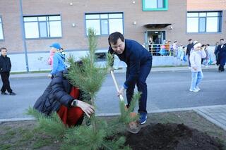 Также глава региона вместе с учащимися, ветеранами сферы образования и депутатами маслихатов посадил саженцы во дворе школы № 80.