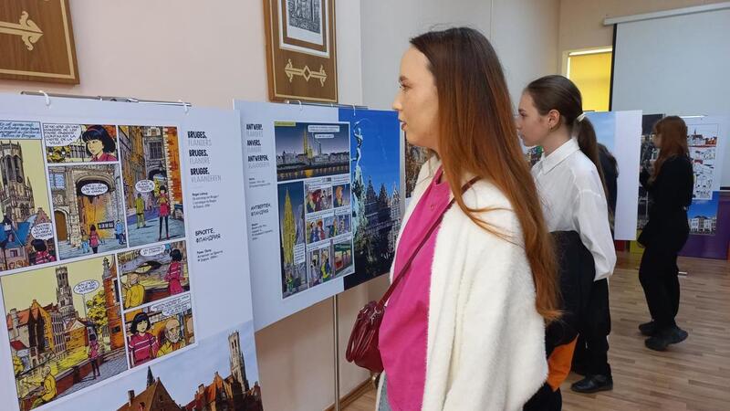 – Эта выставка представлена посольством Бельгии в Казахстане. Придя в библиотеку имени Абая, все желающие смогут открыть для себя эту европейскую страну. Особенность в том, что выставка создана совместно с Брюссельским музеем комиксов. Есть возможность, погрузившись в мир рисованных историй, оценить красоту разных городов Бельгии. В этой небольшой стране три официальных языка: нидерландский, французский и немецкий. Все они присутствуют на панно, – рассказала руководитель Французского альянса Караганды Екатерина Фирсова.