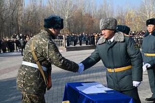 – На один год Жамбылская область станет вашим домом и это время навсегда останется в вашей памяти, – обратился к солдатам Е. Карашукеев. – Мы верим, что вы будете достойно нести воинскую службу, с честью выполнять свой долг перед Родиной.
