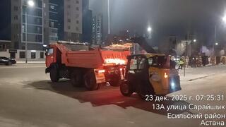 Коммунальные службы столицы продолжают работу в усиленном режиме. Снег убирают и вывозят из города круглосуточно, передает официальный сайт акимата Астаны.За прошедшую ночь из города на снежные полигоны вывезли более 30 тысяч кубометров снега 2 215 рейсами большегрузов. С утра 23 декабря в снегоуборочных работах заняты около трех тысяч дорожных рабочих и 1 527 единиц спецтехники.Всего с начала зимнего периода из города на снежные полигоны вывезли более 971 тысячи кубометров снега 75 062 грузовиками.В первую очередь очищаются основные уличные магистрали и маршруты общественного транспорта. После этого уборка проводится на участках со средней интенсивностью движения — во дворах, на площадях, тротуарах и остановках.Для безопасного передвижения горожан дороги, тротуары и улицы посыпаются технической солью. Вместе с тем отметим, что поддержание порядка на придомовых территориях обеспечивают КСК и ОСИ, которые должны своевременно очищать дворы от снега и наледи для удобства и безопасности жильцов.Акимат Астаны призывает жителей и гостей города соблюдать правила безопасности, быть максимально осторожными на дорогах и тротуарах, а также воздерживаться от дальних поездок при неблагоприятных погодных условиях.
