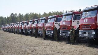 В целом, Правительством по поручению Главы государства реализуется масштабная программа по модернизации противопожарной техники в Казахстане. На эти цели в 2024–2025 годах из республиканского и местного бюджетов выделено 21,5 млрд тенге, в результате чего обеспеченность лесных хозяйств новой техникой по стране достигла 87%. Лесными хозяйствами приобретены 92 пожарные машины, 118 малых лесопатрульных комплексов (МЛПК), 244 трактора, 240 патрульных машин и более 3 тыс. единиц другой техники и оборудования. За счет лизинговых средств выделено 35 млрд тенге на приобретение 1057 единиц противопожарной техники, до конца мая т.г. планируется полное завершение поставок по всей стране.