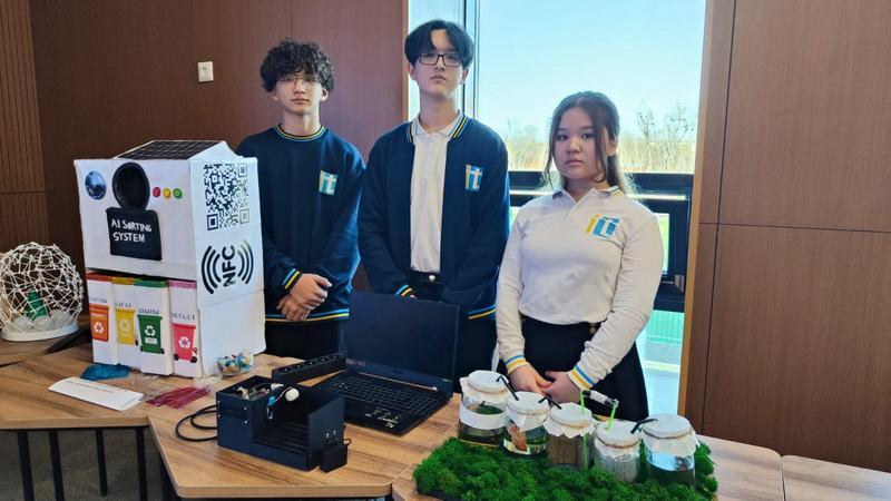 Ученики школы имени Нуркена Абдирова (Караганда) представили три проекта: аппарат для зарядки мобильных устройств от солнечной станции с аккумулятором, установку для переработки отработанного масла с использованием 3D-печати и «Велошредер», устройство для переработки пластиковых крышек, получивший Гран-при. По словам авторов, проект направлен на развитие экологического мышления и сокращение пластиковых отходов.