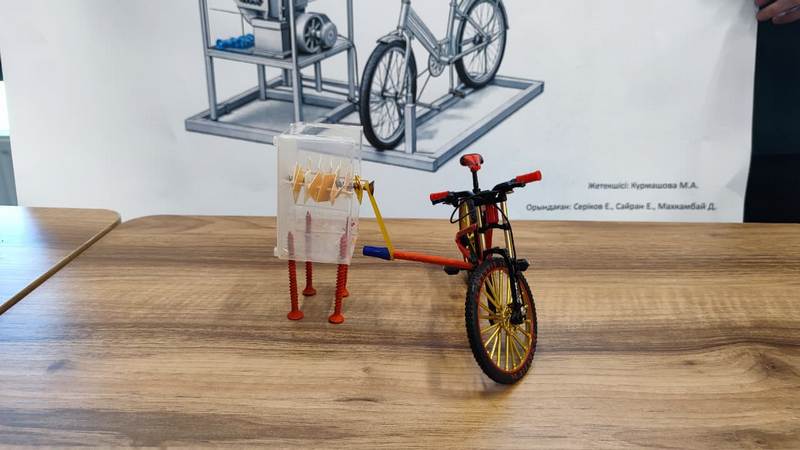 — Сегодня дети часто покупают воду в пластиковых бутылках, и мы решили, что крышки можно собирать и перерабатывать прямо в школе. Из полученного материала возможно изготавливать полезные изделия. При этом велошредер не требует внешних источников энергии — он работает за счёт механического усилия: когда человек крутит педали, крышки поступают в измельчитель, а затем отдаются на переработку, — пояснил ученик школы имени Нуркена Абдирова Әділжан Серіков.