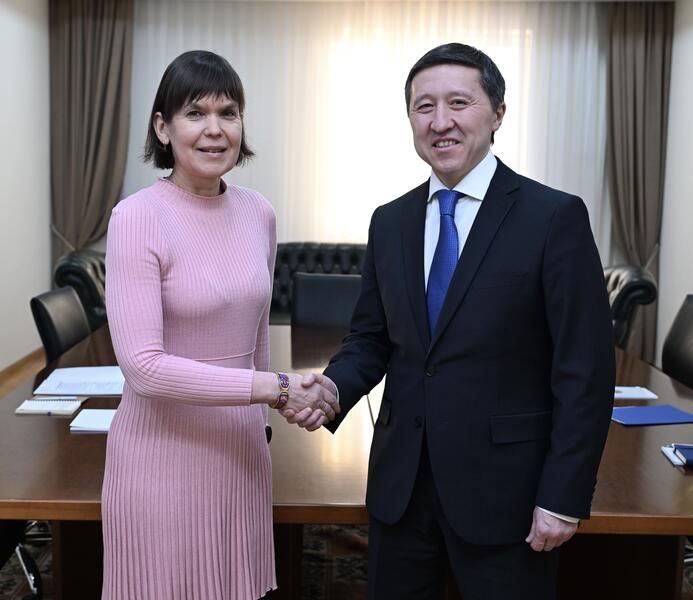 Астана, 16 января 2026 года – Заместитель министра иностранных дел Республики Казахстан Арман Исетов встретился с Послом Латвийской Республики Даце Руткой.