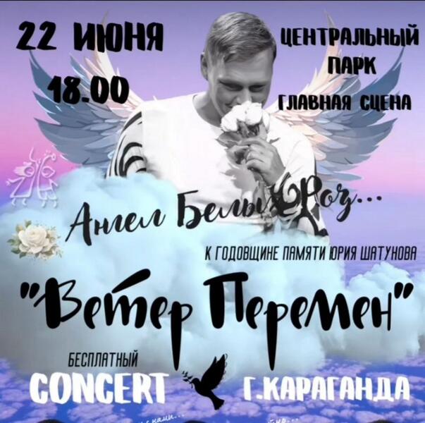 18:00 – на главной парковой сцене концерт памяти Юрия Шатунова. Карагандинская кавер-группа «Ветер Перемен» выступит с хитами группы «Ласковый май».
