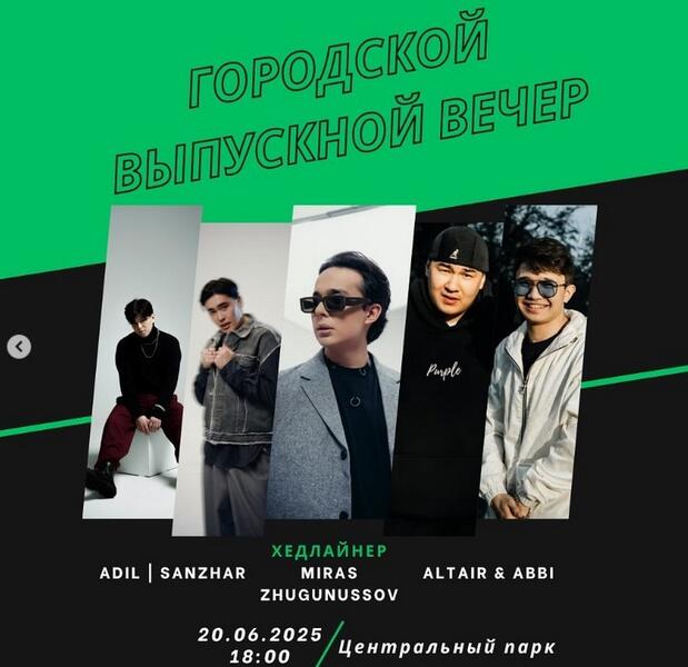 В Центральном парке культуры и отдыха Караганды сегодня, в пятницу вечером, отметят открытие XXI трудового сезона «Жасыл ел» совместно с городским выпускным вечером. Для молодёжи выступят популярные артисты Мирас Жугунусов, Adil, Sanzhar и дуэт Altair&Abbi. Начало концерта в 18:00. Вход бесплатный.