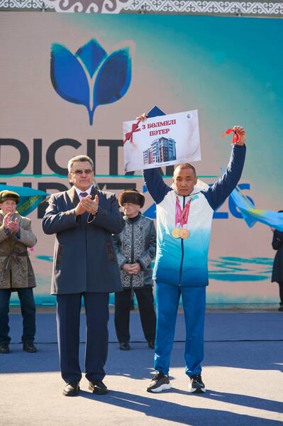В знак признания заслуг спортсменам были вручены ключи от новых квартир: Ерболу Хамитову - трехкомнатная, Надежде Морозовой - двухкомнатная, семье сестер Шумековых - трехкомнатная квартира. Кроме того, ряд спортсменов и тренеров был награжден денежными сертификатами.