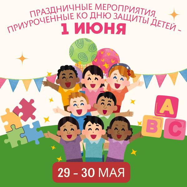 30 мая в 16:00 по адресу мкр. Аблакетка, ул. Островского, 20/1 пройдёт праздничная программа с участием аниматоров.