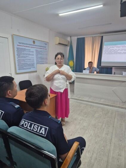 Психолог Центра исследования религиозных проблем Карлыгаш Койшыбаева подробно рассказала о классификации психологических типов и темпераментов личностей, а также методах их распознавания по поведенческим и внешним признакам. Кроме того, проинформировала о признаках, которые могут свидетельствовать о склонности человека к агрессии и конфликтам. Особое внимание было уделено практическим примерам: участники встречи проанализировали поведение правонарушителей и отработали навыки визуальной диагностики.