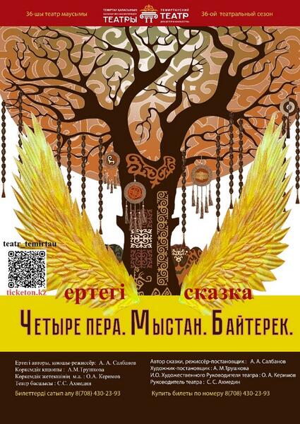 На следующий день, 28 сентября, зрители увидят спектакль «Четыре пера. Мыстан. Байтерек» Айдына Салбанова, в котором затронуты темы семейных ценностей и уважения к старшим.