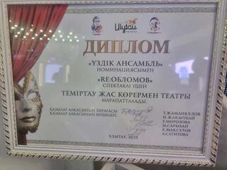— Этот спектакль у нас идёт на малой сцене, в более камерном, «киношном» варианте. В Жезказгане пришлось играть его на большой сцене, и мы переживали за результат. Но он не потерялся, а, наоборот, выгодно выделился среди других. В итоге мы получили престижный приз как лучший ансамбль, — рассказал и. о. художественного руководителя театра Олег Керимов.