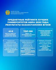 «Результаты предметных рейтингов лучших университетов мира 2026 года показывают, что система высшего образования Казахстана продолжает укреплять свою конкурентоспособность. Дебют 14 образовательных программ по новым предметам свидетельствует о росте международного признания и усилении репутации страны как регионального образовательного центра. Кроме того, вузы Казахстана продолжают улучшать позиции по таким направлениям, как «Образование и обучение» и «Лингвистика», а также впервые входят в топ-100 по «Исполнительскому искусству».