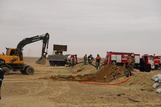 В связи повышение уровня воды в реке Сырдарья и прохождение ледохода в населённых пунктах Кызылординской области, расположенных вдоль реки проверено состояние защитных дамб, наличие запасов инертных материалов, а также отработаны вопросы откачки воды и очистки русел. В данном направлении совместно со службами гражданской защиты Кармакшинского района и сотрудниками №70 Специального управления МЧС России по городу Байконур уточнены этапы проведения учения и определены привлекаемые силы и средства. В трансграничном учении приняли участие 15 человек личного состава и 4 единицы техники №70 Специального управления МЧС России, а также 76 человек и 24 единицы техники служб гражданской защиты Кармакшинского района.