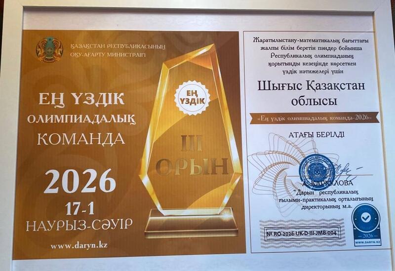 По результатам олимпиады по общеобразовательным предметам (по физике, математике, информатике, химии, биологии и географии) команда завоевала 17 наград, в числе которых - четыре золотых, пять серебряных и восемь бронзовых медалей. Сборная команда Восточного Казахстана также заняла 3 общекомандное место в номинации «Лучшая олимпийская команда-2026».