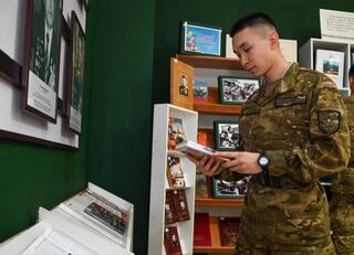 – Наш книжный фонд насчитывает более 7 тыс. экземпляров. Он формировался на основе безвозмездных поступлений из библиотек Астаны, Алматы, Национального университета обороны. Есть у нас и раритетные издания, к примеру, книги Жамбыла Жабаева, изданные в 1949 году, – поделилась заведующая военно-научной библиотекой Национального военно-патриотического центра Вооруженных сил РК Оксана Альжанова.